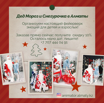 Дед Мороз Снегурочка и Аниматоры для детей в Алматы .